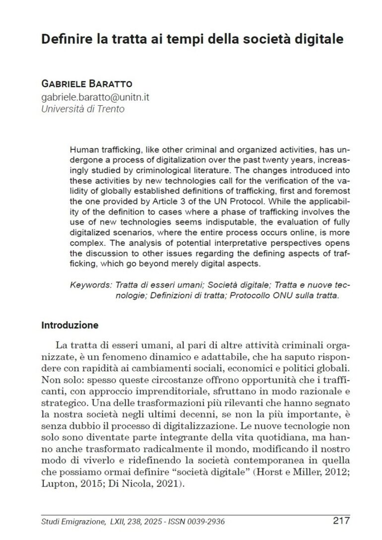 DEFINIRE LA TRATTA AI TEMPI DELLA SOCIETÀ DIGITALE