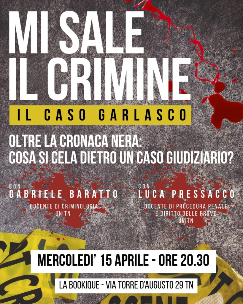 Il primo incontro partirà dal “caso di Garlasco” e affronterà diversi temi, tra cui la criminologia mediatica, la responsabilità e gli effetti della rappresentazione dei casi di cronaca, nonché alcuni principi del processo penale, come il ragionevole dubbio e il processo indiziario.