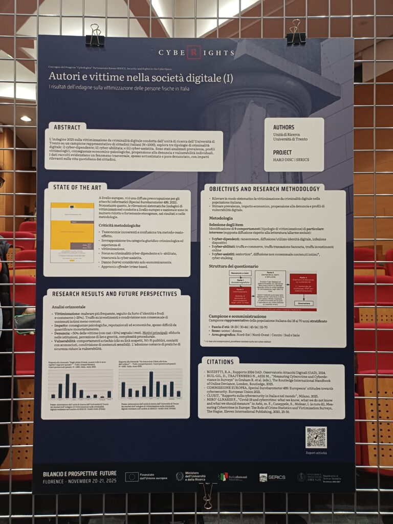 The UniTrento Research Unit took part in the conference “CybeRights: Assessment and Future Perspectives”, held on 20–21 November 2025 at the Department of Legal Sciences of the University of Florence. The event was part of the CybeRights project, developed within the SERICS Extended Partnership – Security and Rights in the CyberSpace.