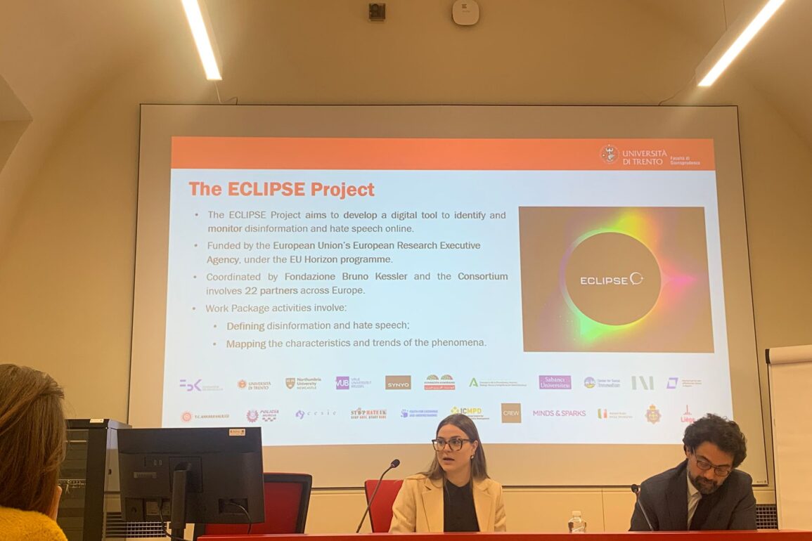 Their presentation was part of the session “Disinformation and Speech Governance: Interdisciplinary Perspectives” and focused on preliminary findings from Task 2.2 of the EU-funded project ECLIPSE project, aimed at analysing hate speech and disinformation across the EU and several European countries.